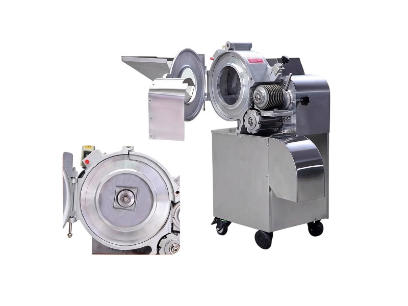 This is an industrial cutting grinder machine specifically designed for fruit chopping. It can process whole fruits and vegetables into regular cubes or cuboids in a single, continuous operation.