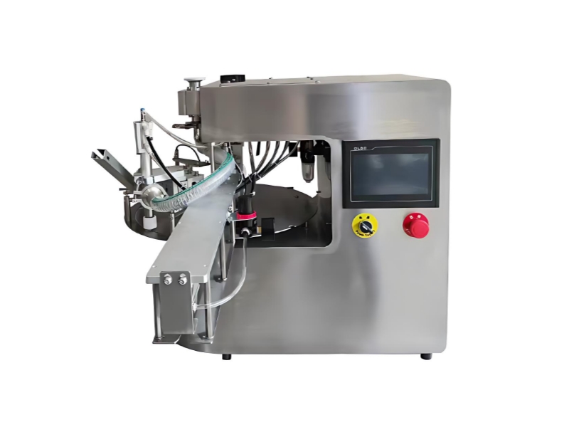The equipment adopts a rotating table layout, with workstations arranged sequentially around a circular turntable, ensuring a smooth flow and compact structure.
