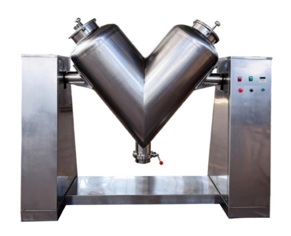 Rotary design: The V powder mixer has a 360 degrees of rotating mixing bowl. Such rotary design causes the powder to continuously separate and diffuse during rotation, achieving a gentle and uniform mixing.